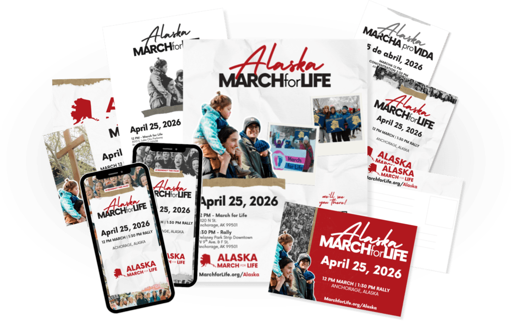 Invite others to join you at the Alaska March for Life! Click the button below for graphics of flyers, social media posts and more.