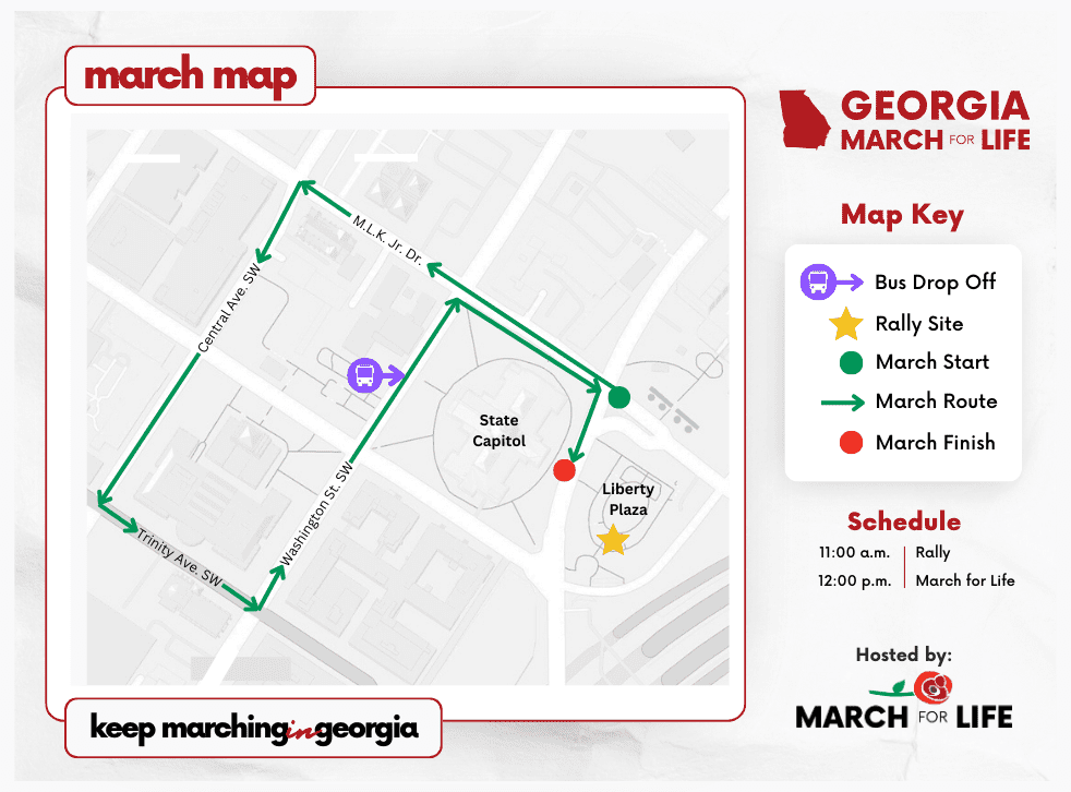 Invite others to join you at the Georgia March for Life! Click the button below for graphics of flyers, social media posts and more.