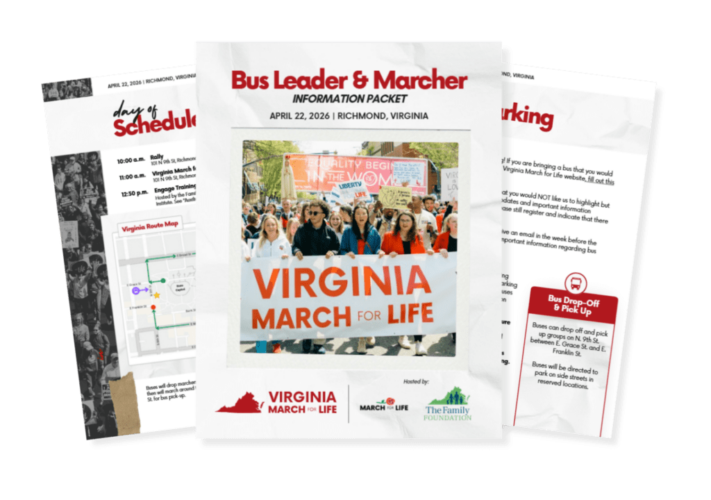 Need a ride to the Virginia March for Life? Click HERE to find a bus near you traveling to Richmond for the Virginia March for Life. Organizing a bus? Click the link below to register with us.