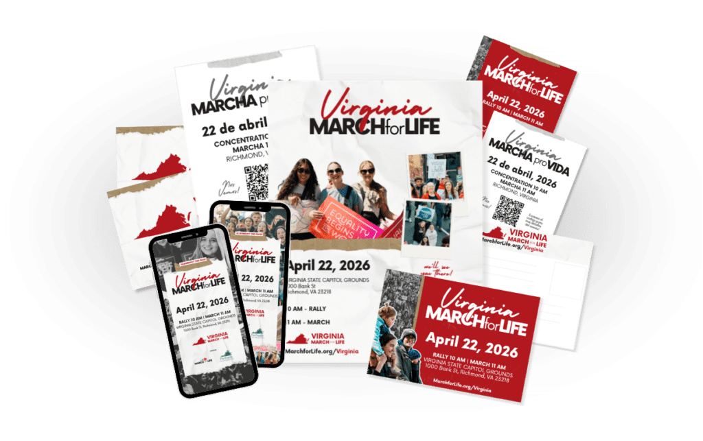 Invite others to join you at the Virginia March for Life! Click the button below for graphics of flyers, social media posts and more.